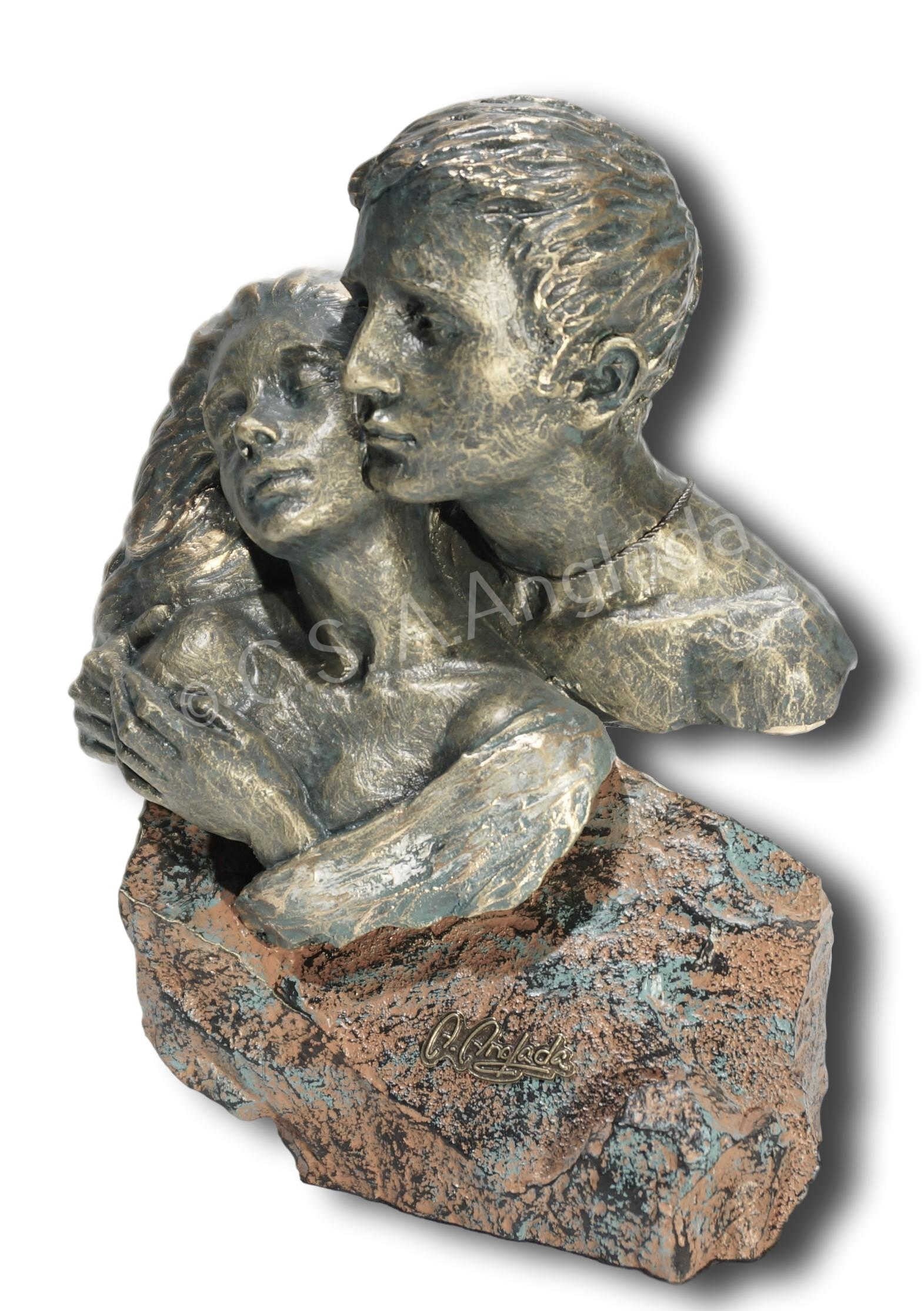 Es una escultura decorativa de tipo busto, que representa a una pareja jóvenes. La chica tiene los ojos cerrados y está cayendo hacia atrás. Parece que han decidido probarse el uno al otro su mutua confianza, dejándose caer de espaldas en los brazos del otro. La joven no tiene miedo porque sabe que detrás está su fiel compañero que la va a sujetar. Claramente, la artista juega de nuevo magistralmente con el simbolismo, tratando esta vez de expresar la confianza ciega que se tienen aquellas parejas que realmente se quieren incondicionalmente. Esta escultura de pareja es una preciosa muestra del valor y el gran apoyo que supone para ti la otra persona.