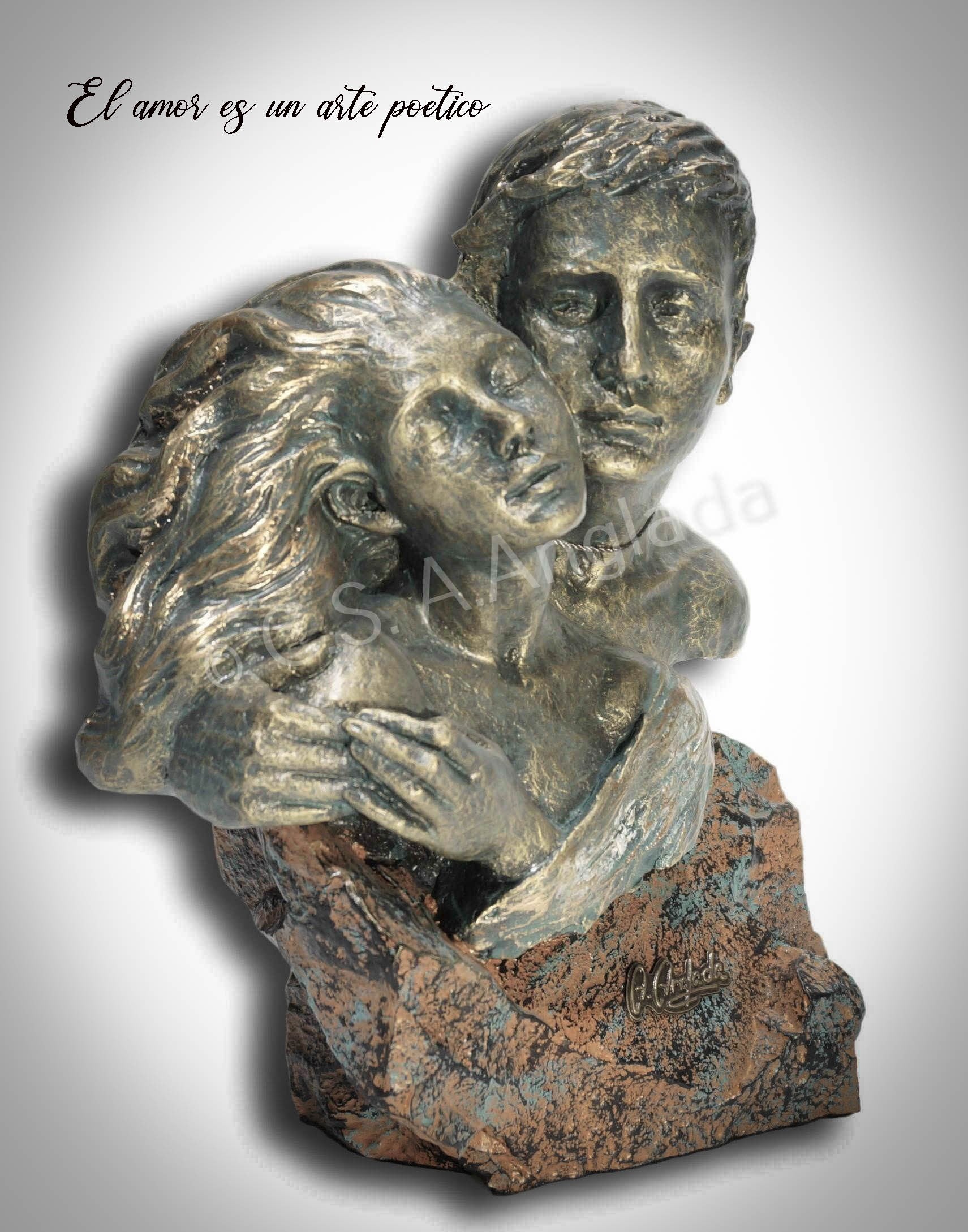 La afamada escultora Ángeles Anglada ha usado técnicas artesanales en la creación de esta obra. La pieza está fabricada en cuarzo y resina. Tiene un acabado en bronce patinado, que añade a la escultura un bonito brillo dorado, típico de este material. La escultura de pareja “Apoyo” destacaría en cualquier espacio, ya sea de estilo moderno o contemporáneo. Podría ser un maravilloso regalo de boda, de aniversario o incluso un regalo de Navidad.