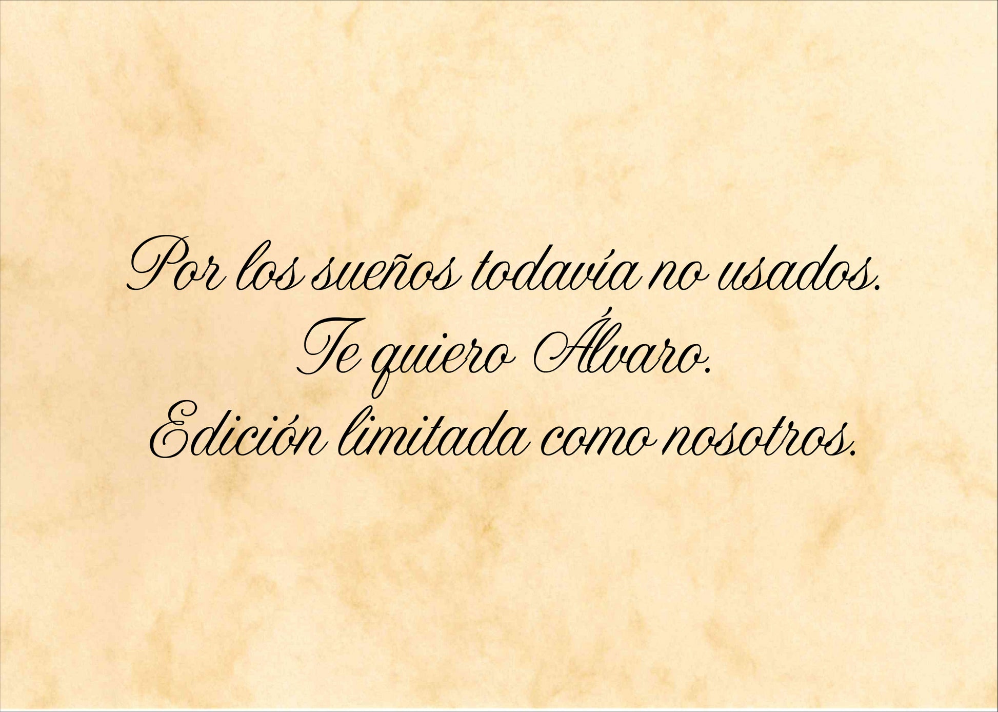 Podrías poner este texto en una tarjeta como la que ves en la foto, o grabarlo en una placa metálica. También podrías hacer las dos cosas y elegir textos y tipografías diferentes para la tarjeta y para la placa.