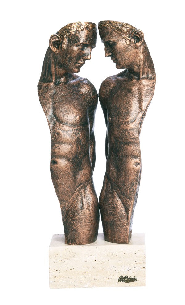 Escultura decorativa moderna, que representa ese nexo de unión tan especial que a veces surge entre dos personas. Dos hermanos, dos amigos, simplemente dos seres humanos unidos por un fuerte vínculo común.