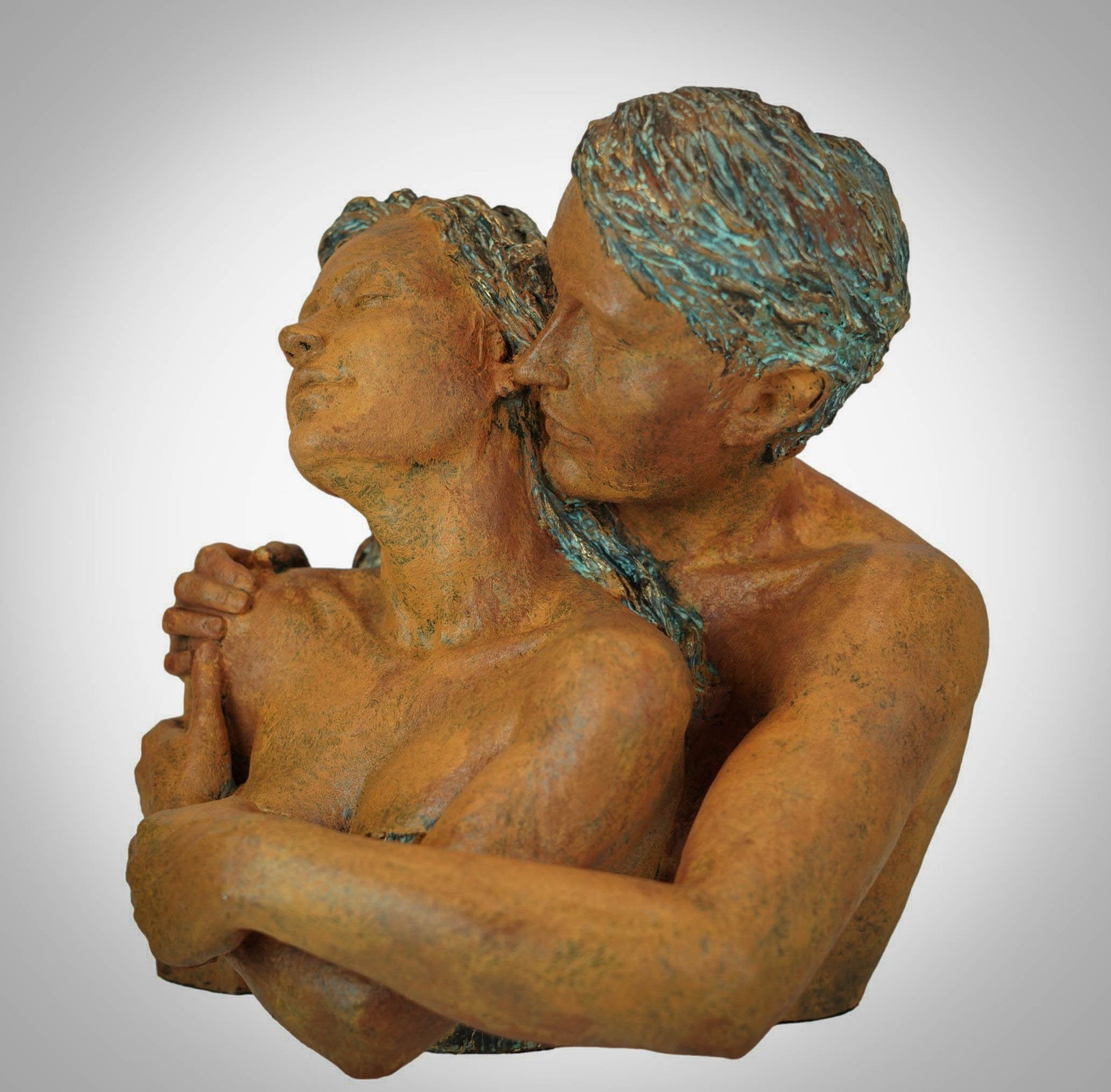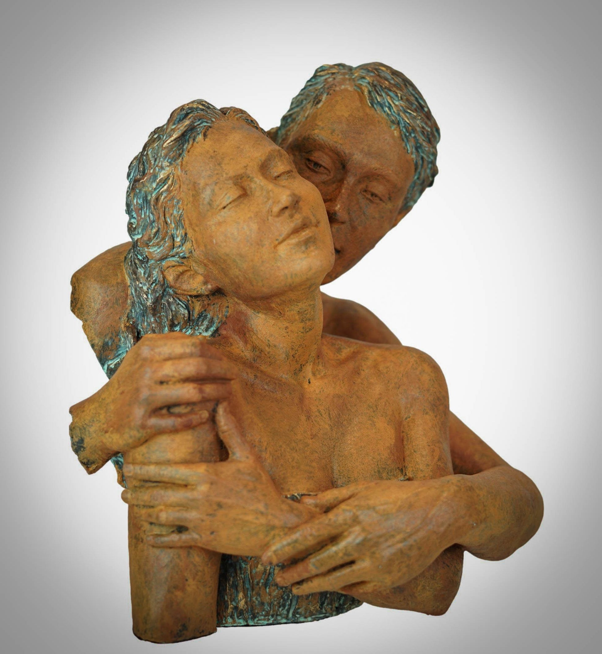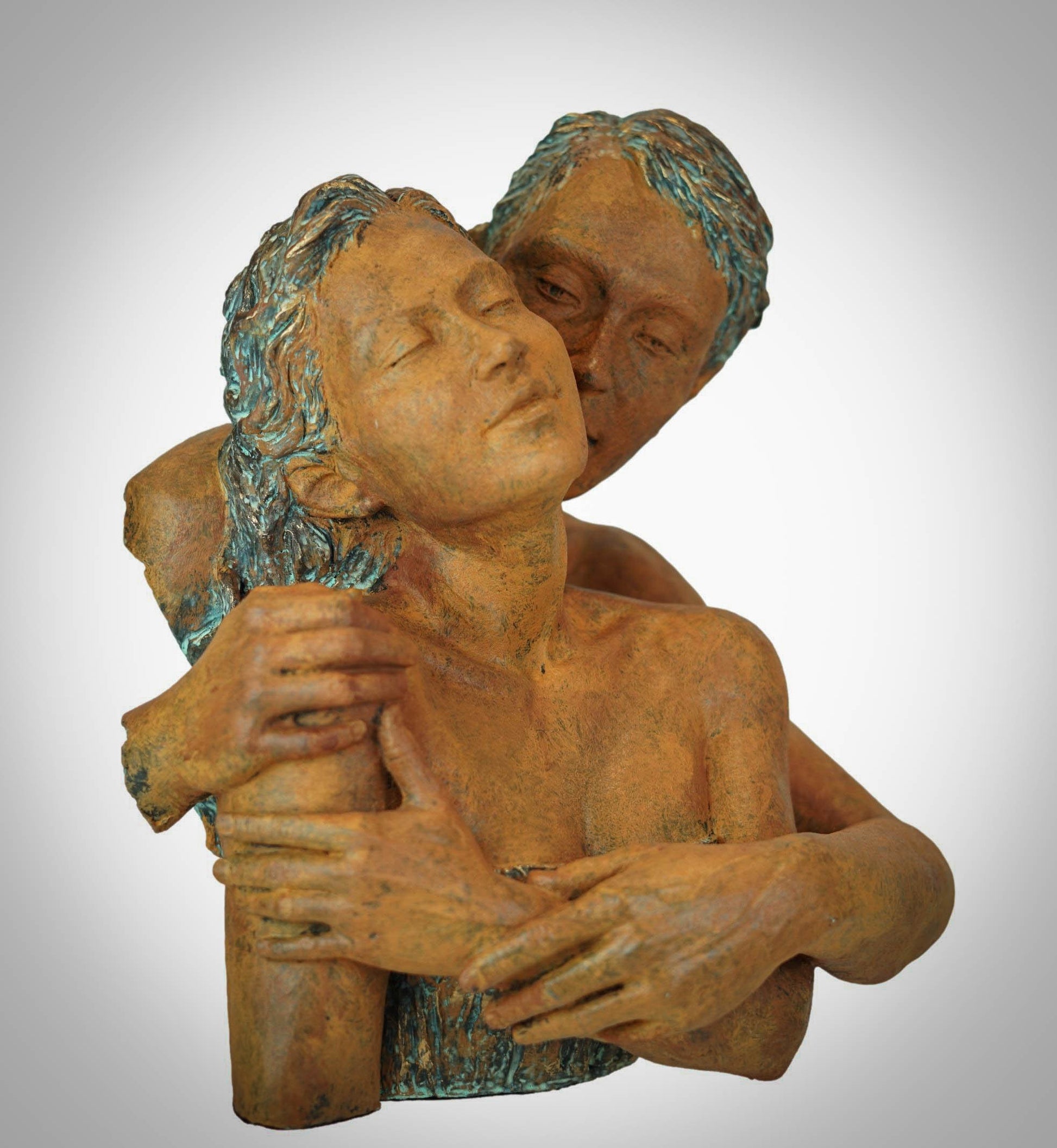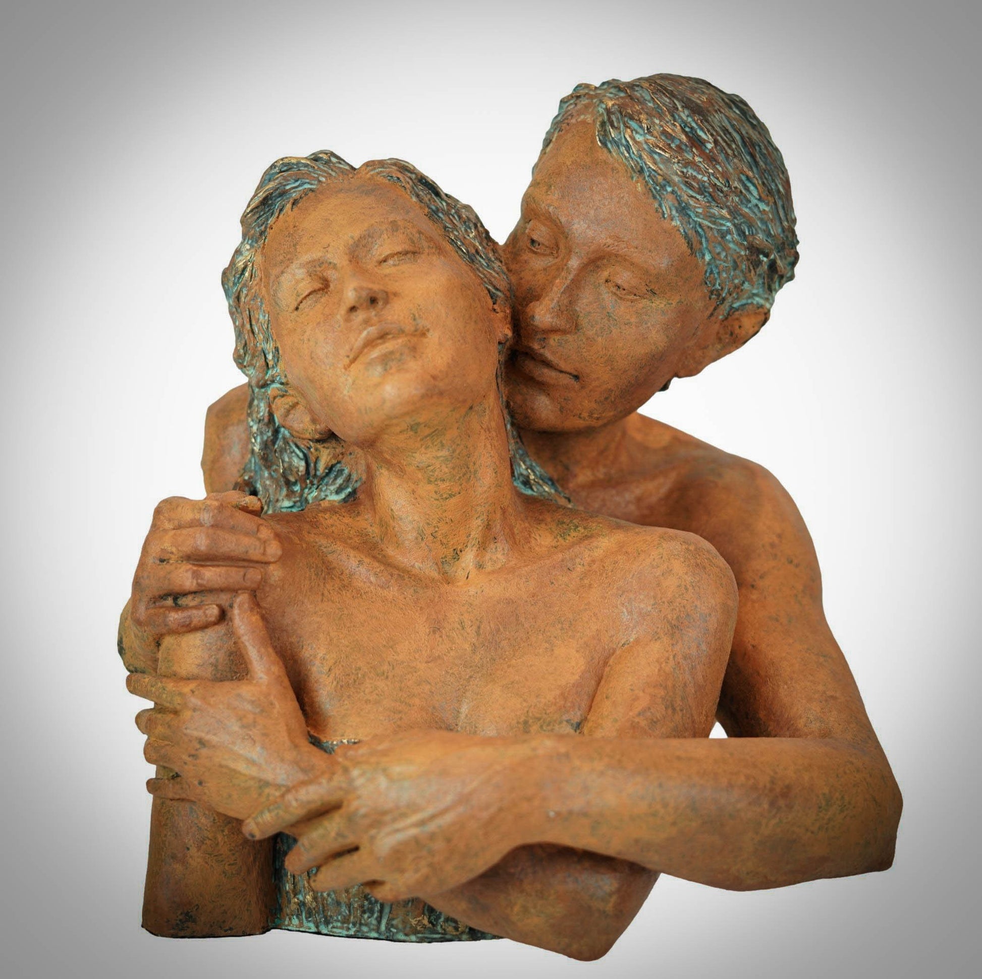 Se trata de una escultura moderna, que representa a una pareja de jóvenes enamorados abrazándose. La gran expresividad de los personajes nos permite ver claramente la pasión que sienten el uno por el otro. El chico estrecha fuertemente entre sus brazos a la joven, mientras que ella no puede evitar cerrar los ojos por este momento tan placentero. Están completamente absortos el uno en el otro, por esa maravillosa sensación de haber encontrado su alma gemela y poder estar junto a ella.