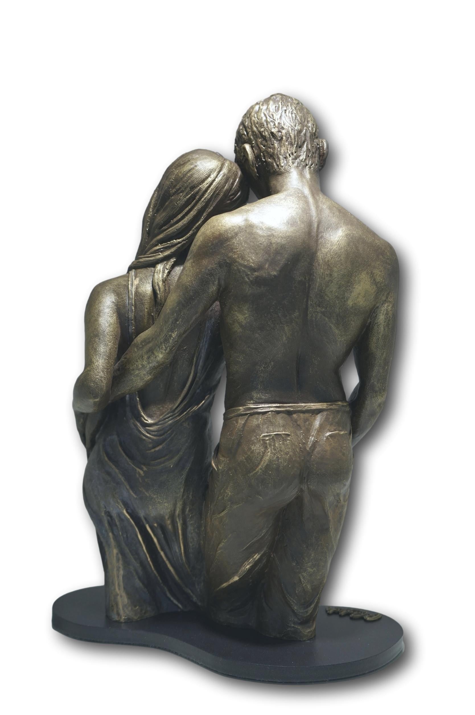 Escultura de pareja MODELO “ARMONIA” es una preciosa muestra de amor inmortalizada en cuarzo y resina, con diversos baños de aleaciones metálicas. La famosa diseñadora Ángeles Anglada, ha tratado la obra dándole un acabado bronce para conseguir un acabado clásico. Los personajes parecen estar soñando, quizás en su propio mundo.