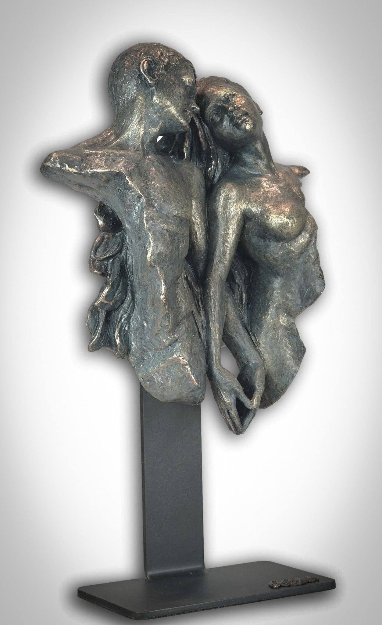 La escultura de pareja “Cómplices” es una preciosa muestra de amor inmortalizada en cuarzo y resina, con diversos baños de aleaciones metálicas. La famosa diseñadora Ángeles Anglada, ha envejecido su obra para conseguir múltiples efectos. En el acabado predomina el bronce patinado. En el pelo de los personajes resaltan toques dorados de latón, que crean la sensación mágica que trasmite la escultura. Los personajes parecen estar soñando, quizás en su propio mundo.