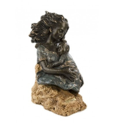 Busto de madre durmiendo al bebé, sobre una imitación de piedra rustica.