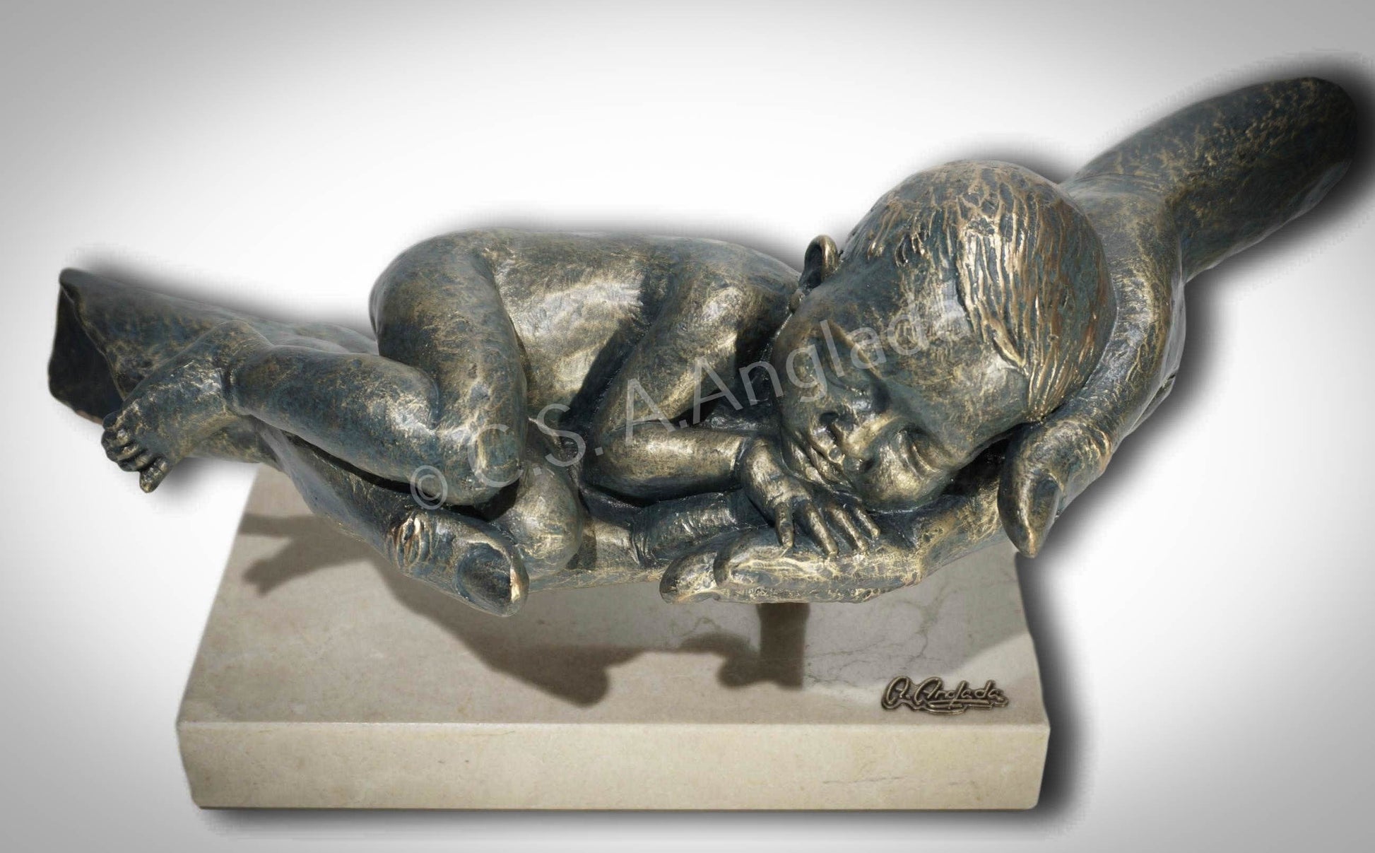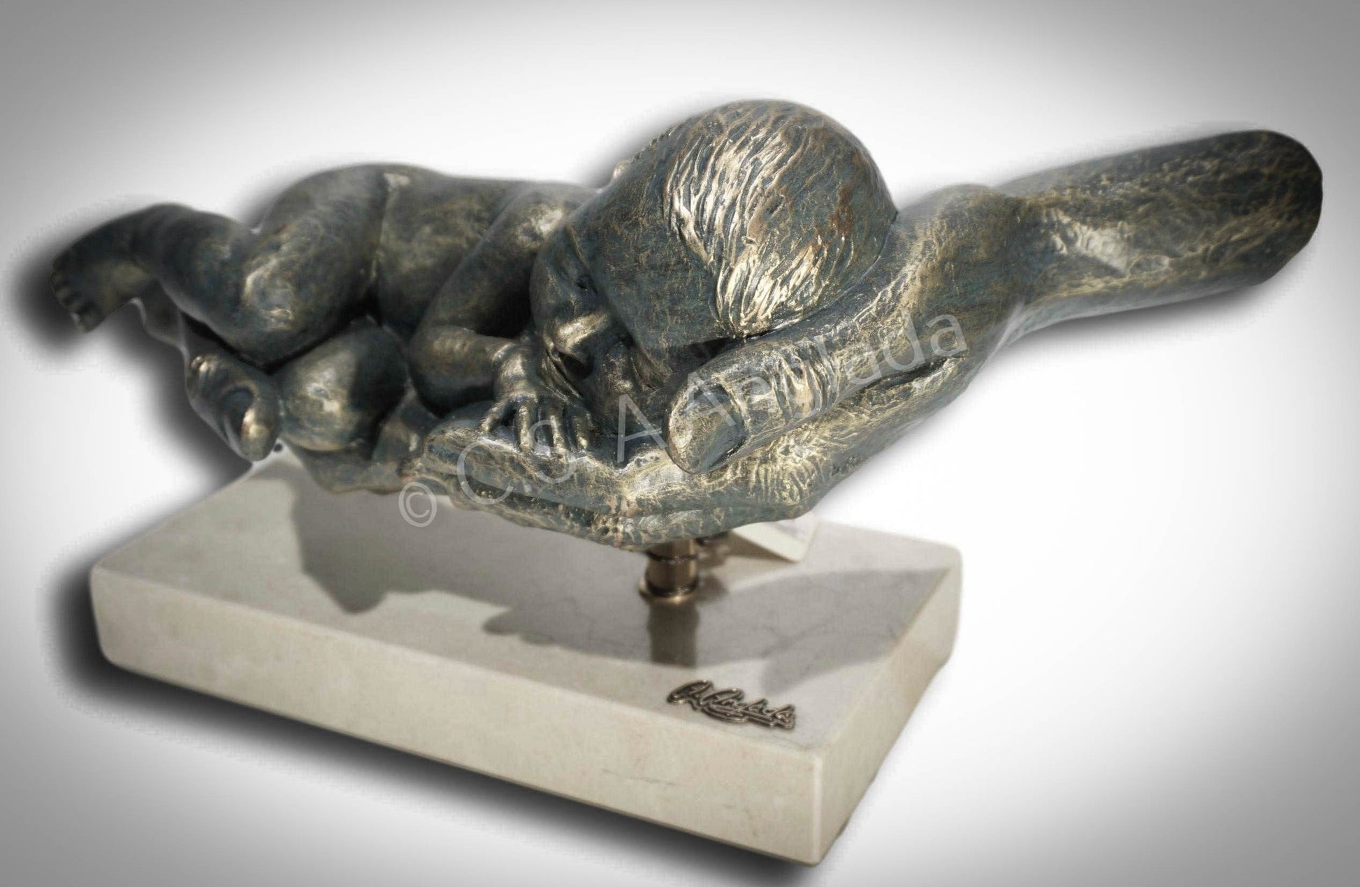 Escultura de maternidad, que representa a un bebé que se ha dormido sobre las manos de su madre, mientras esta le canta una nana. Tanto las manos como el rostro del bebé, resultan realmente expresivas y realistas. La escultura consigue transmitirnos una agradable y cálida sensación de placidez y tranquilidad.
