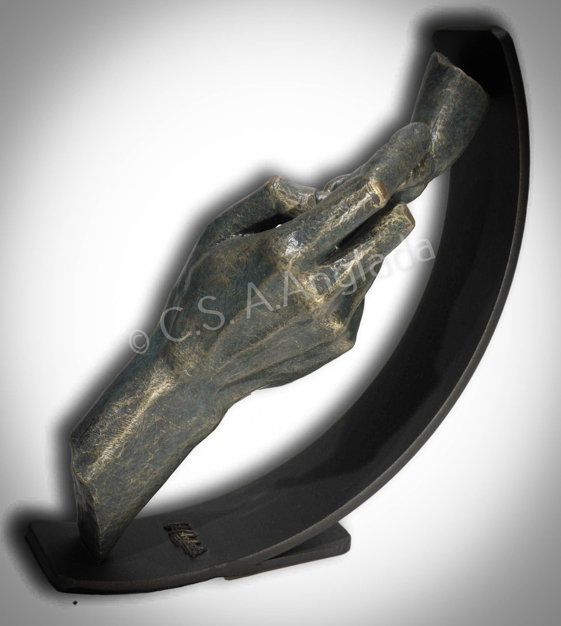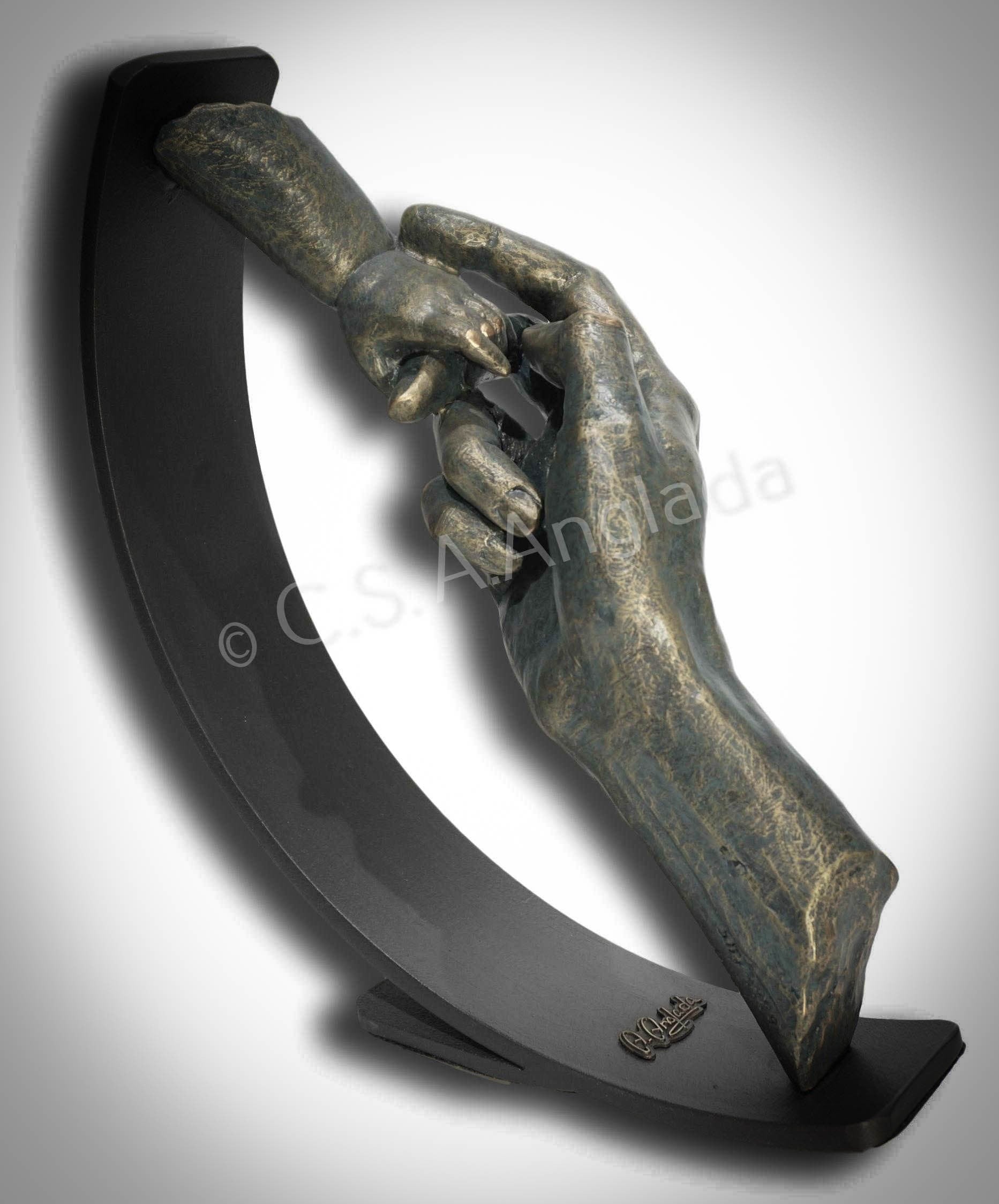 Escultura "No me sueltes", acabado bronce patinado.