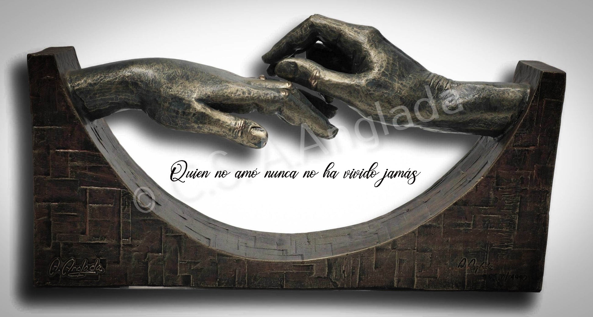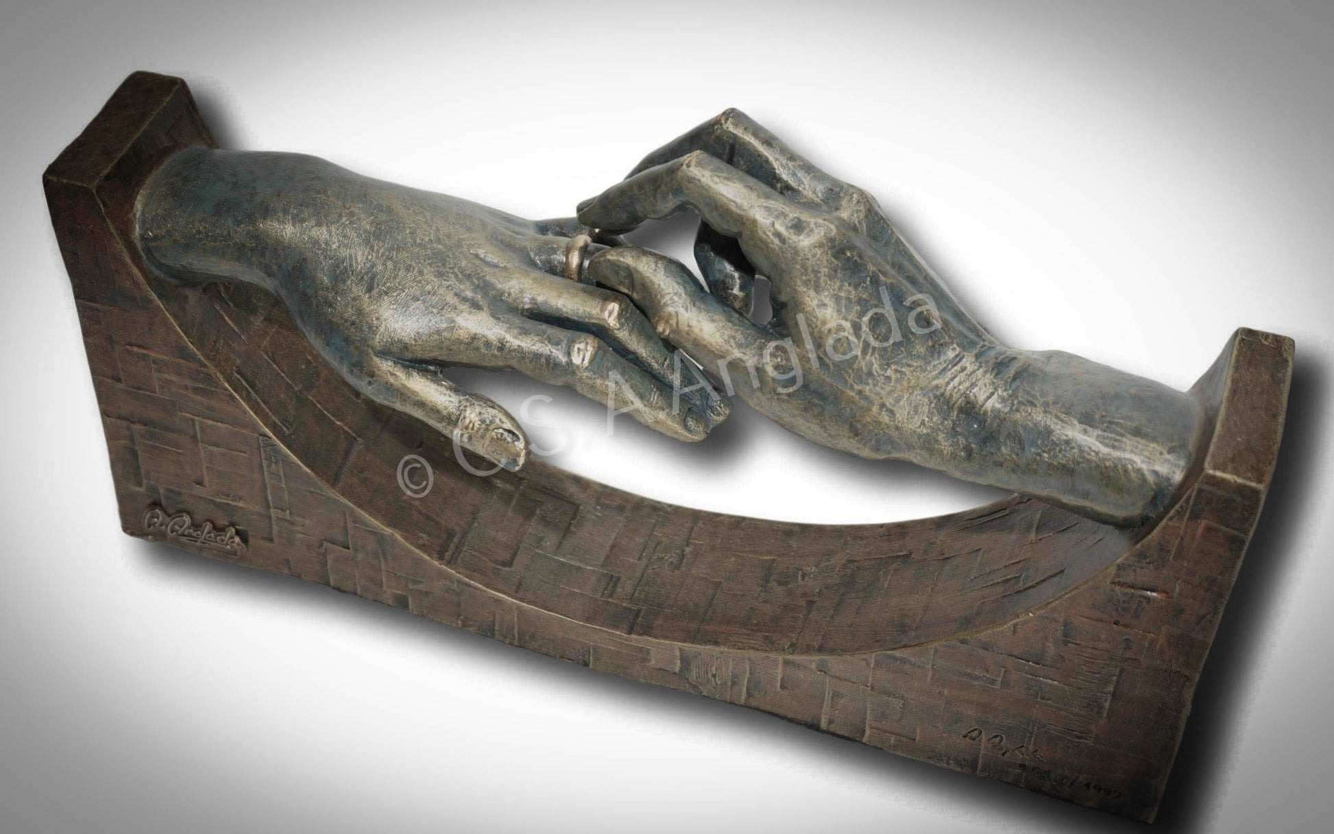 Es una escultura realista que simboliza la unión formal de una pareja. Es increíble como la escultora Ángeles Anglada consigue expresar todo el cariño, amor y respeto que sienten el uno por el otro. La verdadera maestría no tiene límites, al igual que los verdaderos sentimientos expresados en esta escultura de manos, que se han unido para siempre.