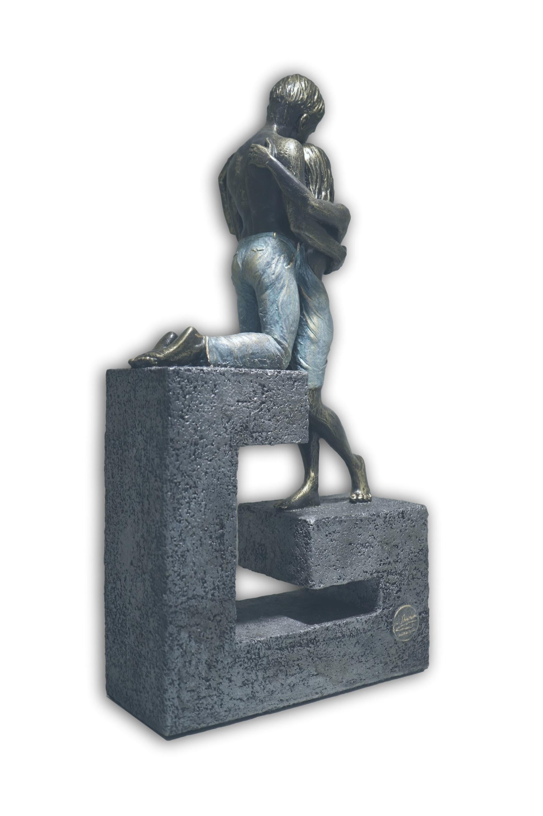 Escultura de pareja "TERNURA" es una preciosa muestra de amor inmortalizada en cuarzo y resina, con diversos baños metálicos y patinas. En el acabado predomina el bronce. Los personajes parecen estar soñando, quizás en su propio mundo.