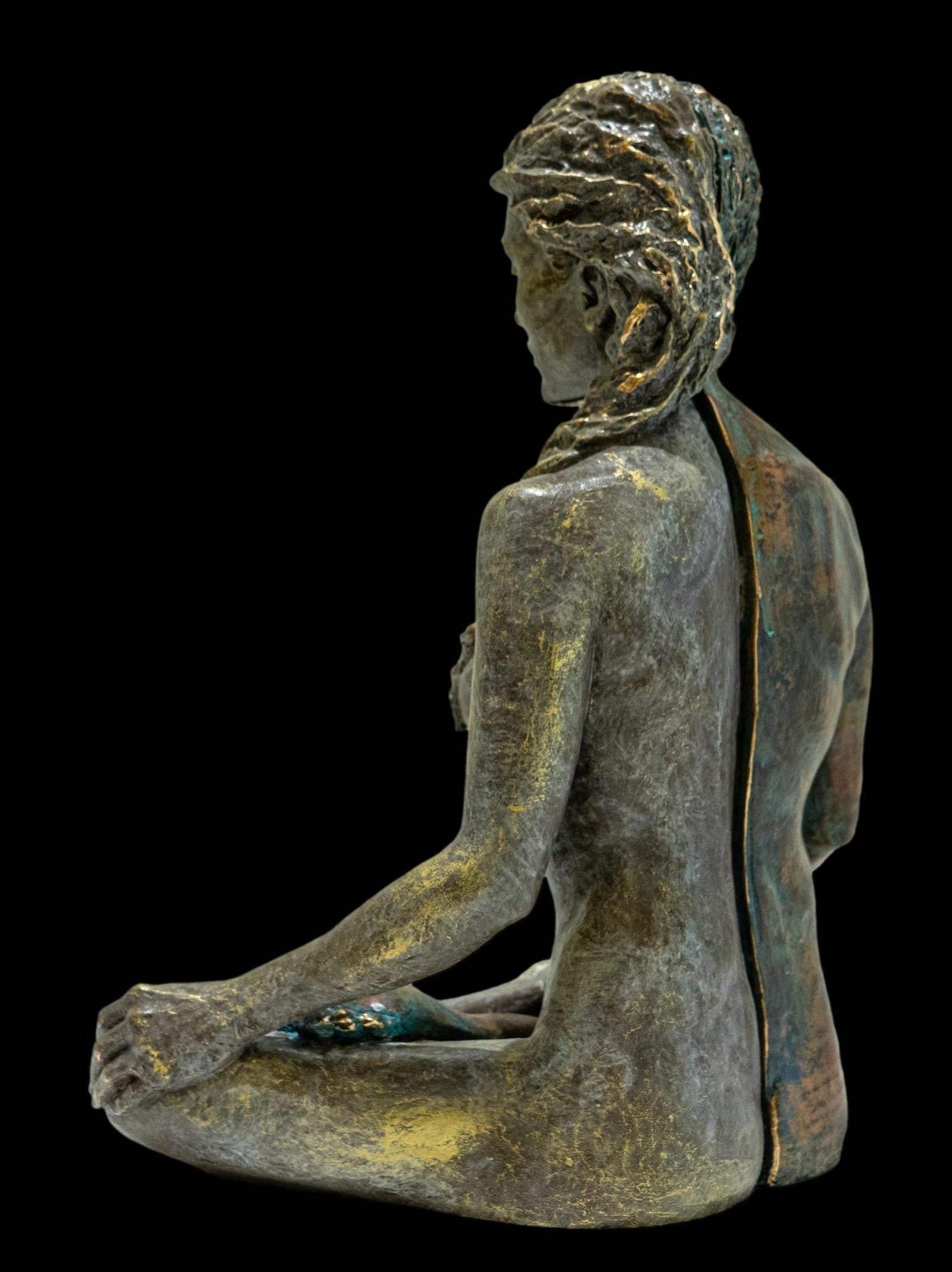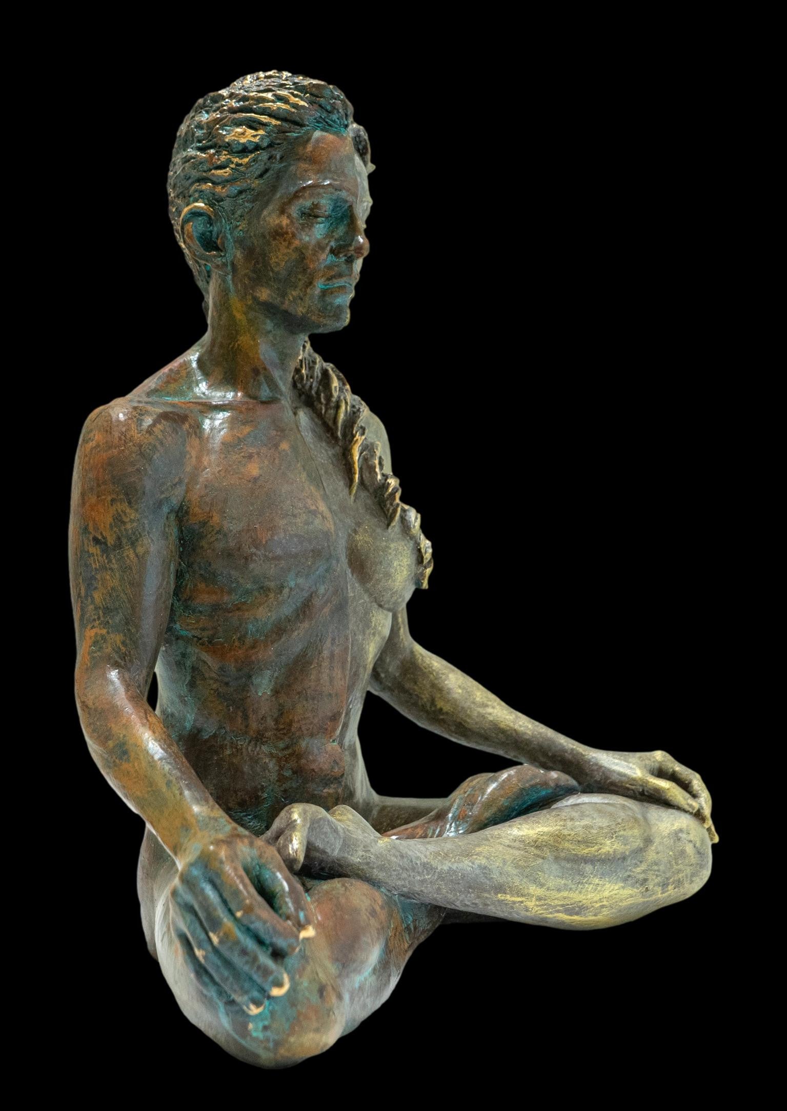 Escultura realizada en compuesto de piedra caliza y resina, acabado bronce y óxidos con distintas patinas para diferenciar los dos cuerpos.