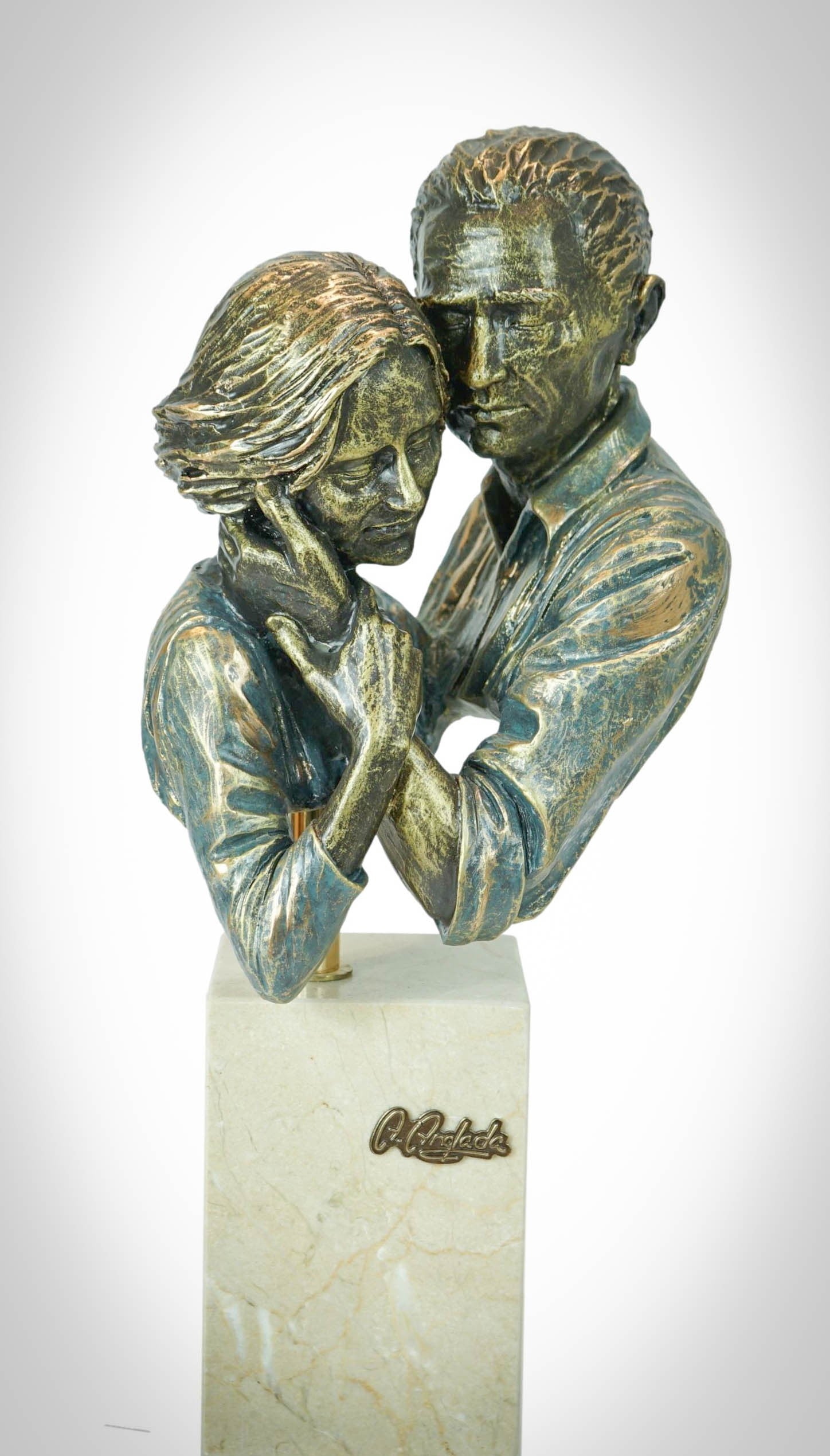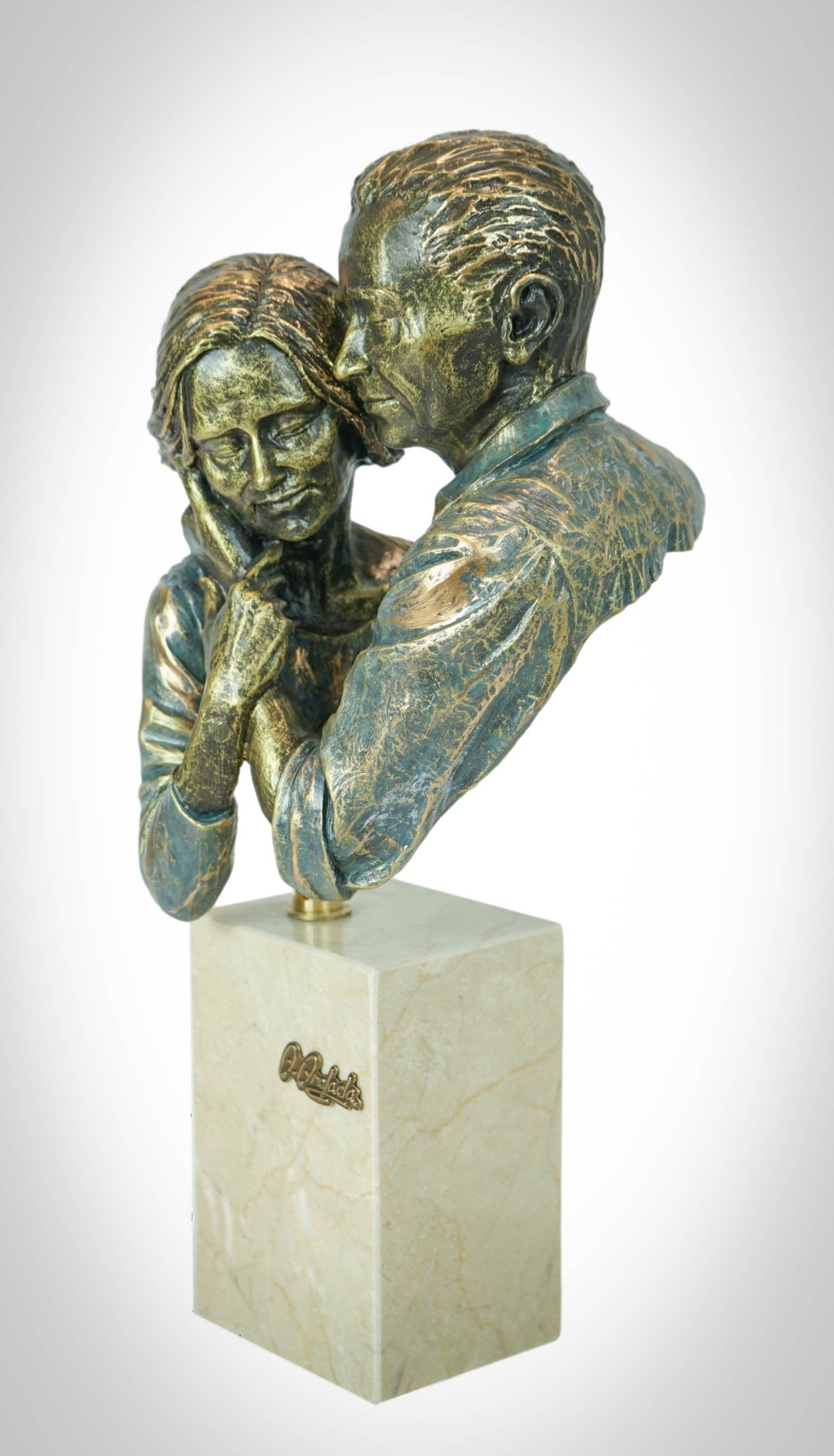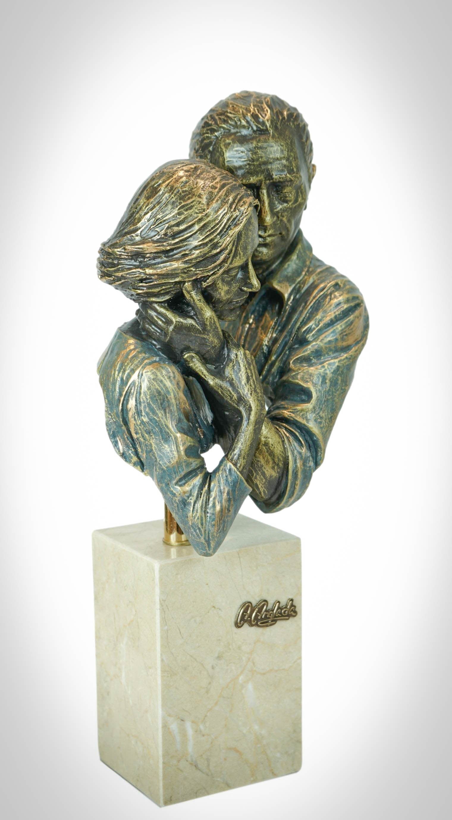 Si te interesa esta escultura de pareja como regalo original de aniversario o para otra ocasión, te ofrecemos personalizarla mediante un grabado en una elegante placa metálica sin coste alguno por tu parte.