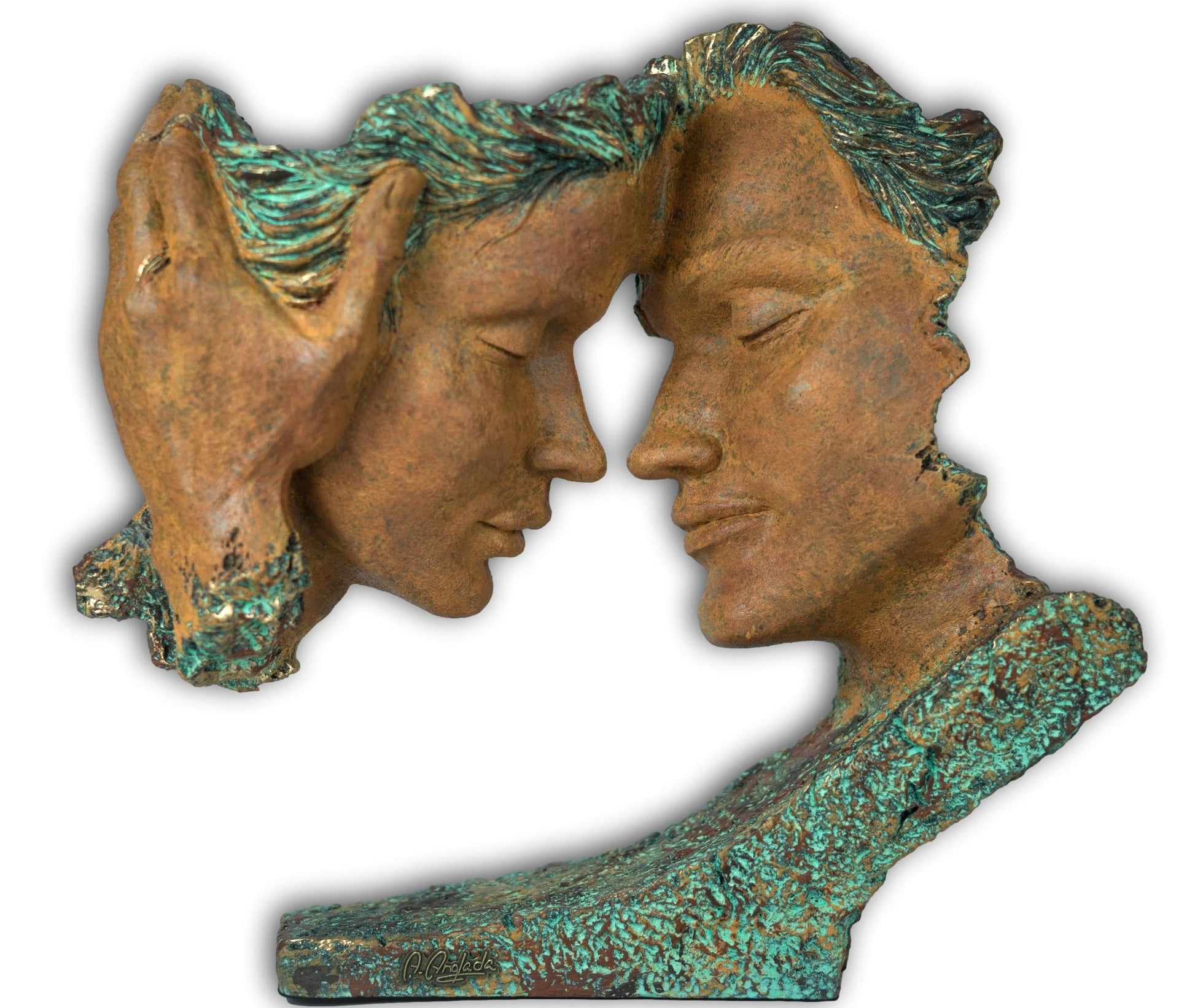 Es una escultura moderna de amor, que sería ideal para un regalo de boda o regalo de aniversario. Su diseño elegante y original se integrará perfectamente en cualquier espacio, ya sea de estilo moderno o clásico. Así que puedes estar tranquilo, seguro que les gustará a los novios tu regalo de boda. Las técnicas artesanales, que usa la diseñadora Ángeles Anglada hacen a esta escultura todavía más valiosa a nivel estético.