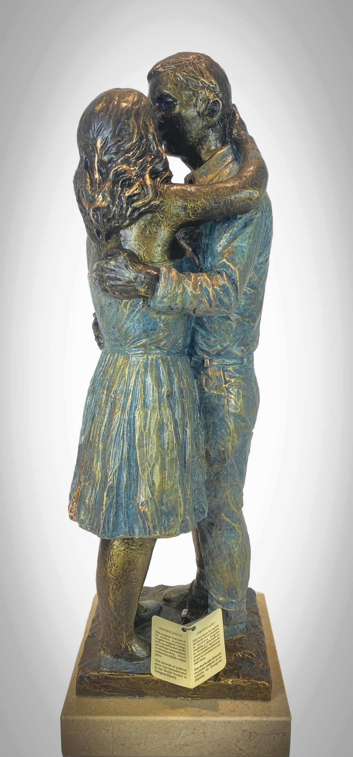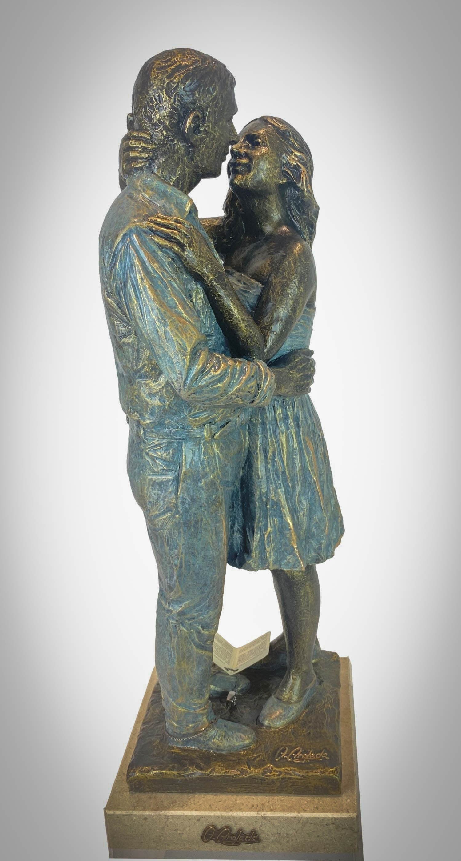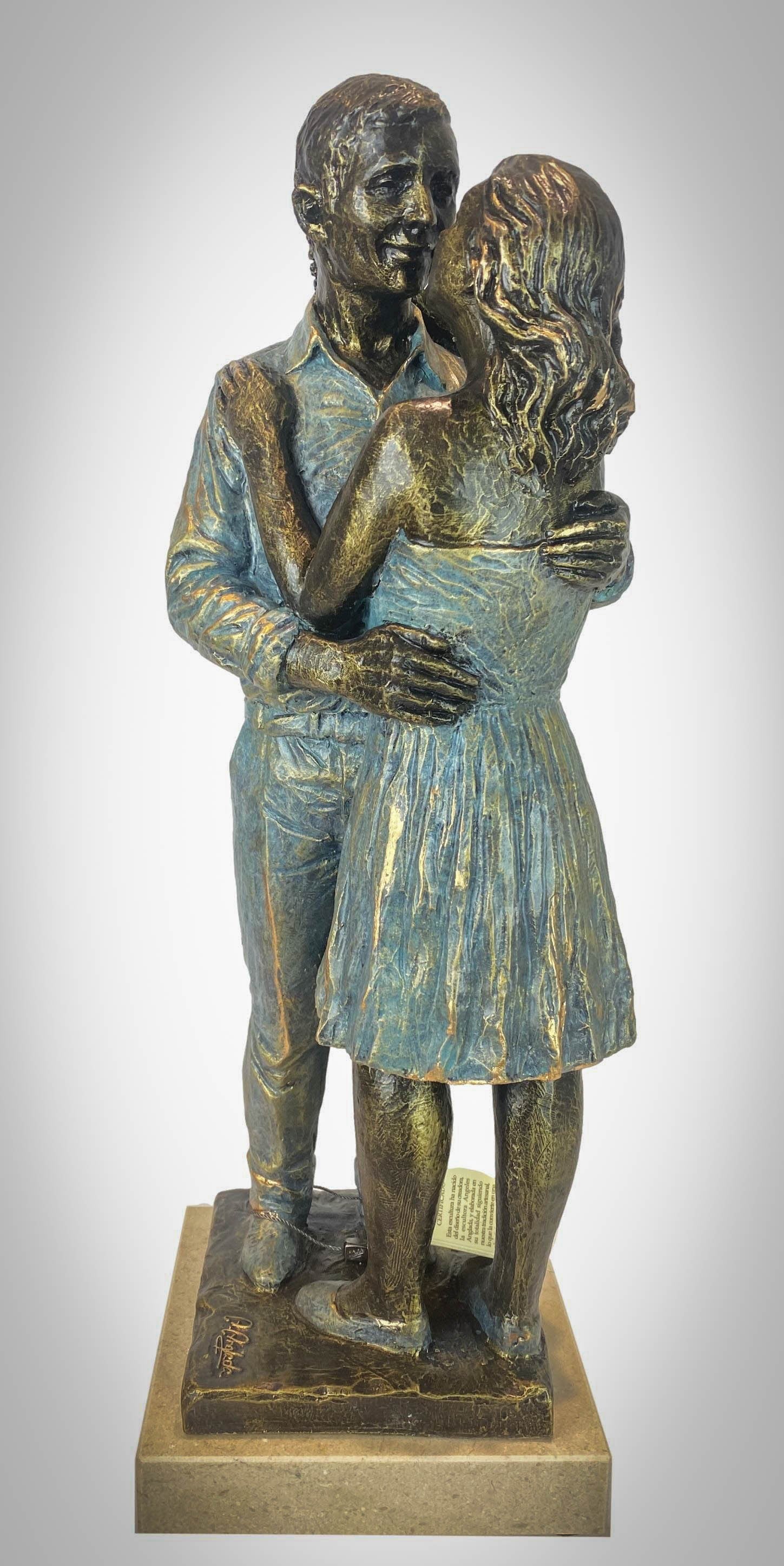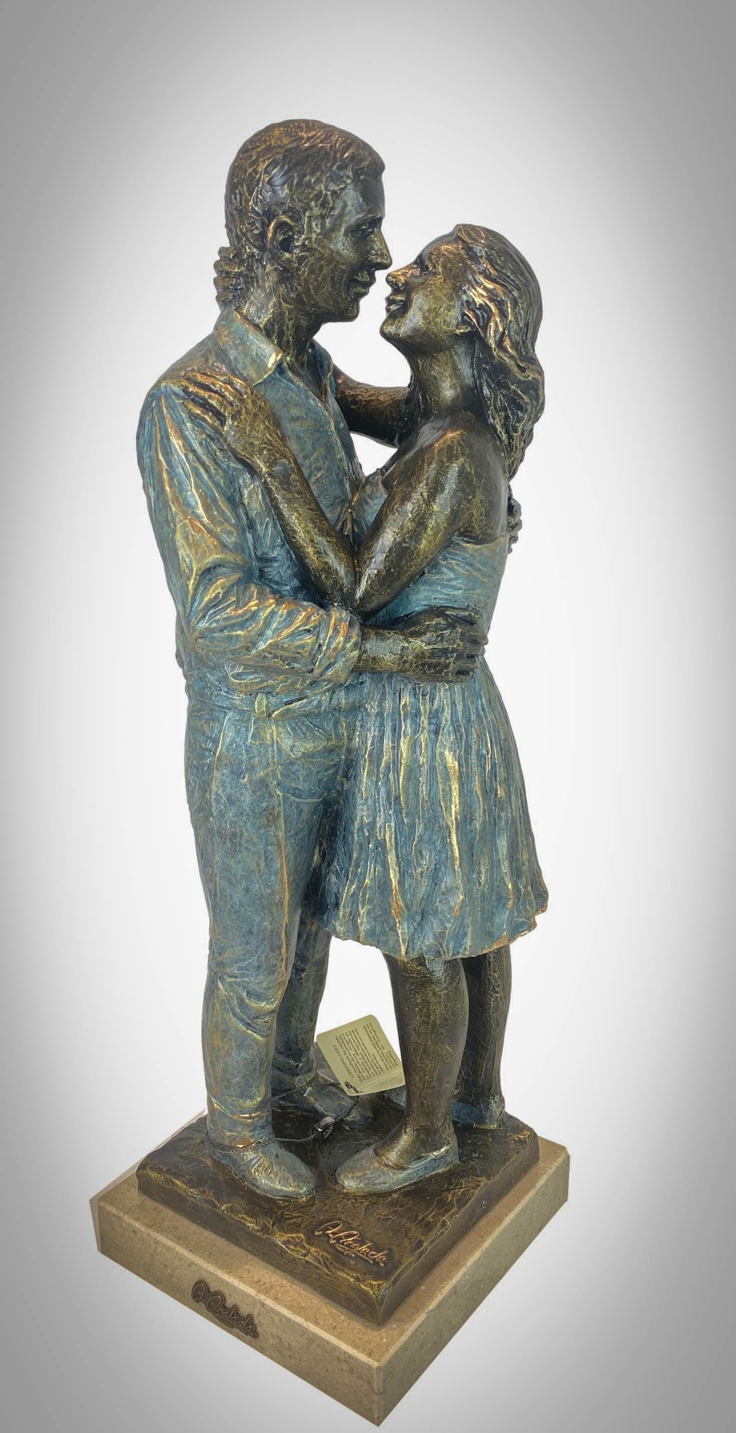 Es una escultura de pareja, que expresa a la perfección un sentimiento tan maravilloso como es el amor verdadero. La pieza nos muestra a una pareja madura, que, aunque llevan ya muchos años caminando juntos por la vida, aún siguen mirándose el uno al otro con una tierna y cálida sonrisa. Es un claro ejemplo de un proyecto de vida juntos exitoso. La expresión facial y corporal de estos personajes, nos dejan entrever que la edad es solo una cuestión mental, y que cuando dos personas se quieren de verdad, el estar juntos los rejuvenece.
